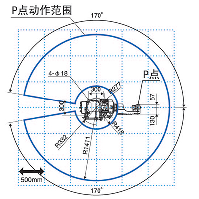 動作范圍 | 基本軸J1 | ±170°(±50°) |